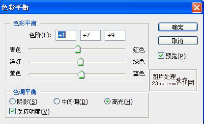 10.新建色彩平衡調解層,具體參數如下